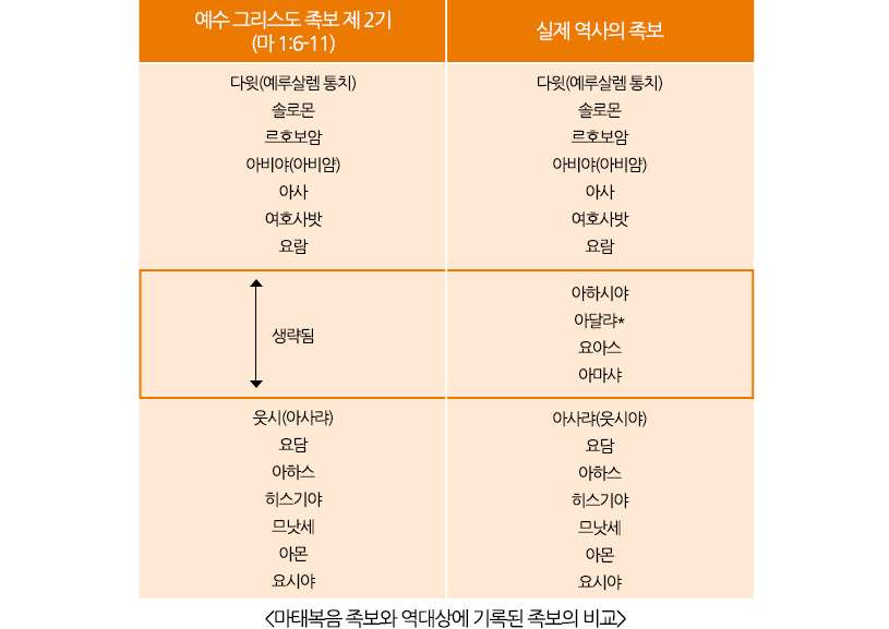 Ⅰ. 예수 그리스도의 족보 제 1기에서 생략된 대수 ·272