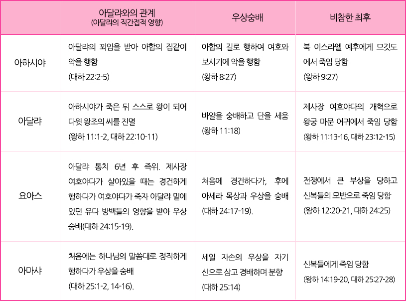 1 아하시야 2 아달랴 3 요아스 4 아마샤