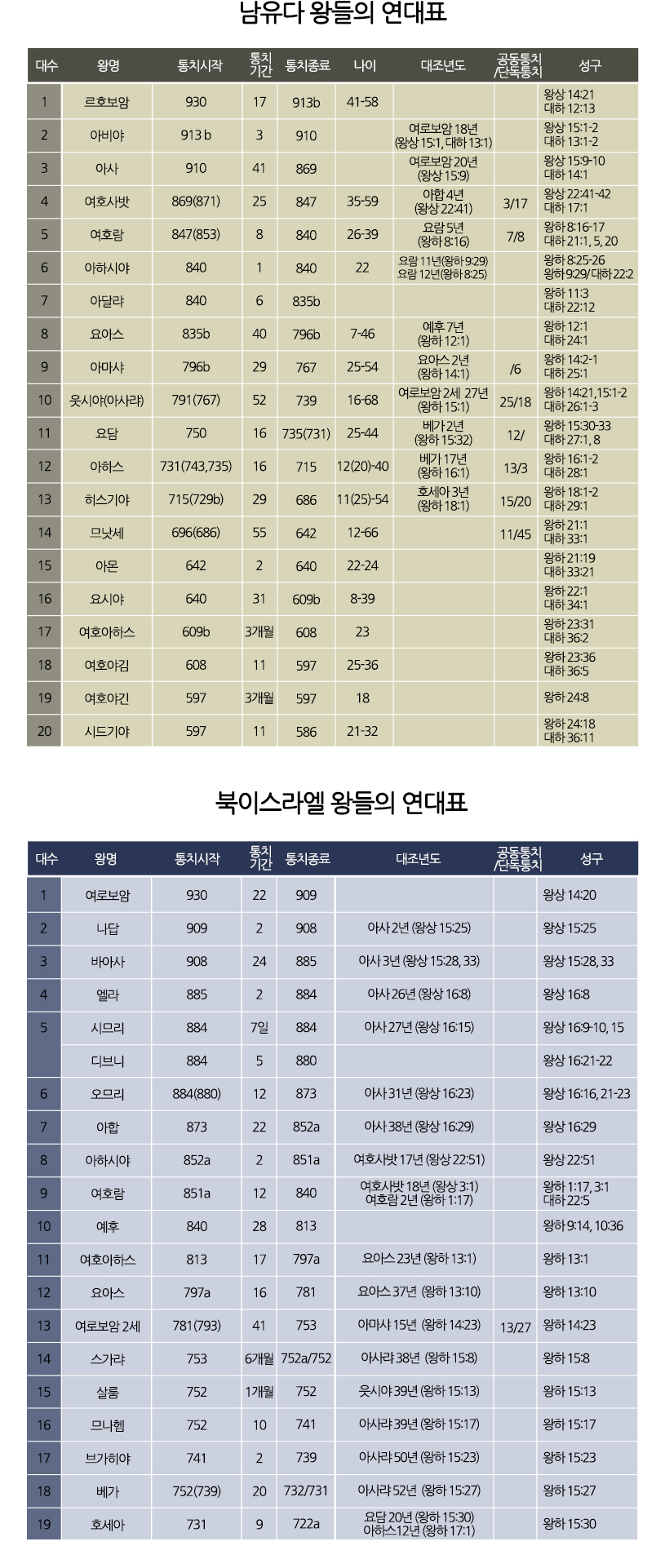 이해도움 1·분열왕국 시대의 통치 연대기 - 남 유다