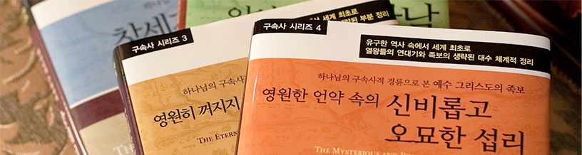 성경에 나오는 ‘족보’를 구속사적 관점에서 해석함으로써 새로운 지평을 연 것으로 평가받고 있는 박윤식 목사의 구속사 시리즈는 지난 2007년 10월에 제 1권 창세기의 족보를 시작으로, 이스라엘 백성들의 광야 노정과 가나안 정복 과정을 다룬 제 2권 「잊어버렸던 만남」, 예수 그리스도의 족보와 족보 속에 빠진 연대와 인물들에 대한 구속사적 관점을 다룬 제 3권 「영원히 꺼지지 않는 언약의 등불」에서 금번 4권에 이르기까지 만 2년만에 집필하는 엄청난 저력을 보여주고 있다. 나아가 ‘언약’과 ‘족보’를 통해 구속사의 새 지평을 열어 줌으로서 한국 교계에 새로운 성경적 안목을 제시해주고 있다.