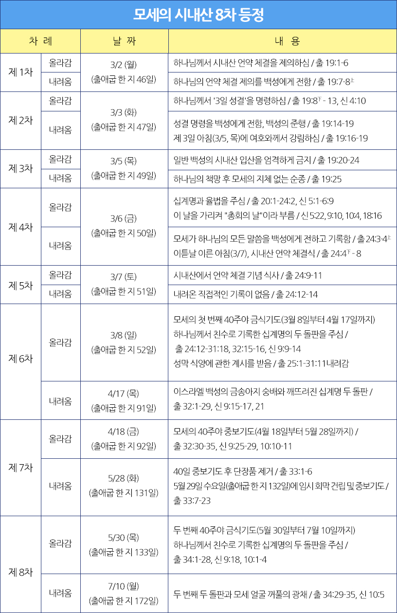 이해도움 1·모세의 시내산 8차 등정 일정(주전 1446년)