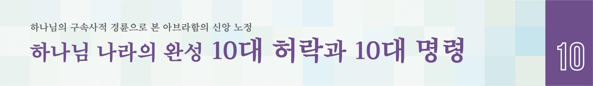 그러므로 죄악의 먹구름, 칠흑 같은 어두움이 가득한 말세지말에 ‘아브라함에게 주신 10대 허락과 10대 명령’에 관하여 깊이 연구하고 상고하여 보는 일은 참으로 복된 일이 아닐 수 없습니다. 저는 비록 한평생을 마감해야 할 시간이 다가오는 시점에 있지만 용기를 내어, 목회 초기부터 강단에서 선포하며 성도들과 함께 받았던 하나님의 은혜를 마무리하게 되었습니다.