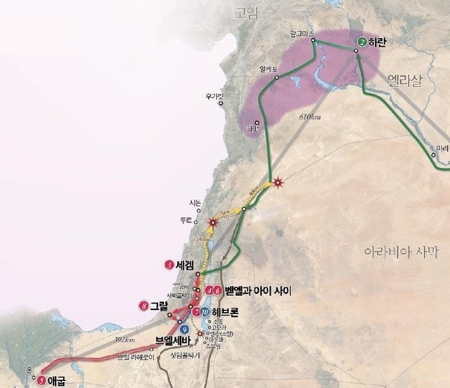 ① 아브라함의 일생노정은 하나님을 말씀에 의지하여 순종하는 과정과 신앙의 성장 단계에 따라 아브라함의 노정이 옮겨졌다. 나의 신앙의 상태에 따라 내가 서 있는 믿음의 장소가 이동한다는 것을 깨닫게 해준다. 지금 나는 어떠한 자리에 서 있는가?