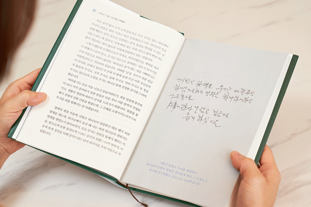 어느 날 갑자기 내가 하는 일에 회의감이 밀려오기 시작했습니다. 15년이라는 긴 세월 동안 나는 ‘일’이라는 감옥에서 산 것 같은 생각이 들었습니다. 옆도 뒤도 돌아보지 않고 앞만 보고 달려온 것이 너무 억울하게도 느껴졌습니다. 그러면서 기쁨 대신 한숨과 짜증만 늘어났습니다. 기쁨이 없으니 간절한 기도도 힘들었고, 내 삶에 감사가 부족한가 싶어서 자책도 해보고 벗어나려고 노력도 해 보았지만 조금 나아졌다가는 다시 그런 마음이 나를 삼켜버렸습니다. 지친 몸으로 잠들기 전 우연히 휘선설교집을 펼쳐보게 되었습니다. ‘항상 기뻐하 고 쉬지 말고 기도하고 범사에 감사하라’. 너무나 익숙한 구절이지만, 모든 것을 함축하고 있는 이 말씀을 가 슴으로 받으며 내 마음에 평안이 왔습니다. 다시 지나온 세월을 되짚어 보았습니다. 나를 돌아볼 여유도 없고 많은 눈물과 고통으로 얼룩진 시간들이었지만, 그럼에도 돌이켜보니 감사로 가슴이 뜨거워지는 시간이 많았 습니다. 지금은 그때와 비교하면 정말 평화로운 삶인데… 나는 왜 그랬을까? 나의 신앙의 열매를 맺지 못했기 때문이었습니다. 내 삶이 극한적으로 힘든 순간에도 정답은 언제나 말씀 안에 있었습니다. 아무리 바쁘고 정 신없는 시대를 살고 있어도 말씀만은 꼭 붙잡고 신앙을 지켜야 기쁨과 기도와 감사의 세 가지 열매를 맺을 수 있음을 깨닫게 하십니다. 다시 이 축복의 말씀으로 든든히 일어섭니다.