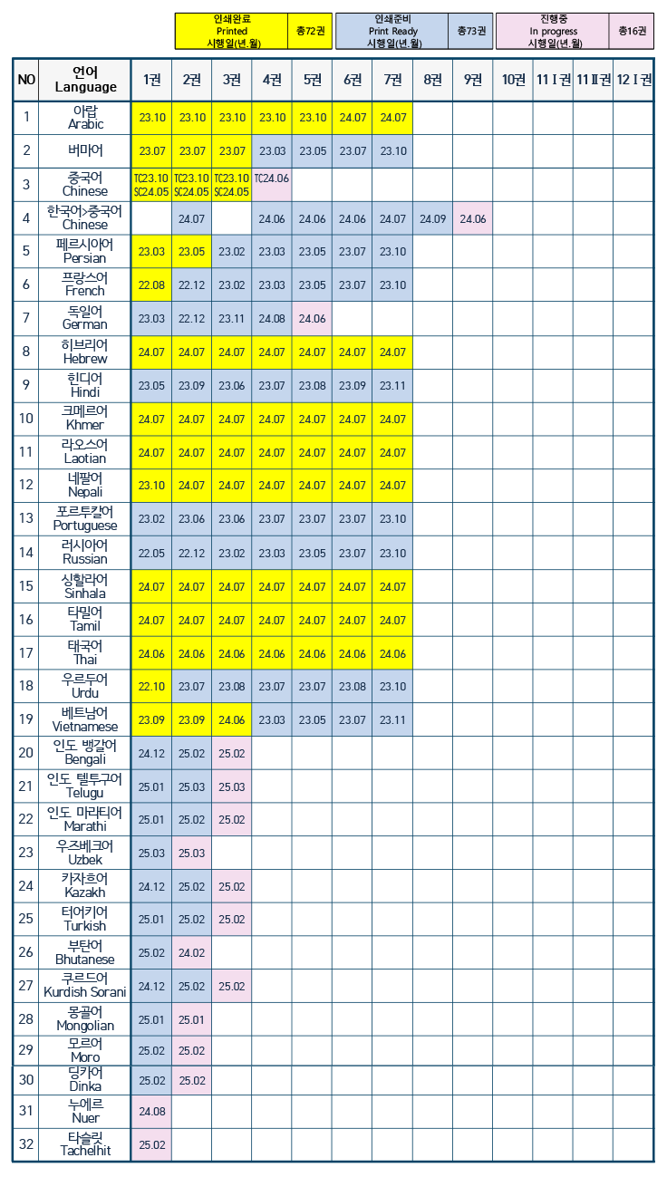 현지어 도서는, 2025년 3월 1일 기준으로 44개 언어로 번역, 29개 언어로 인쇄, 20개 언어가 판 매되고 있음